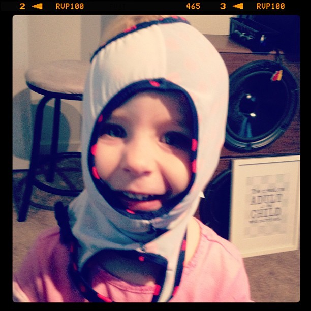 This is what happens when you let your 2 year old pick out her own outfit. She’ll pick her polka dot swimsuit, put it on upside down and look hilariously cute.