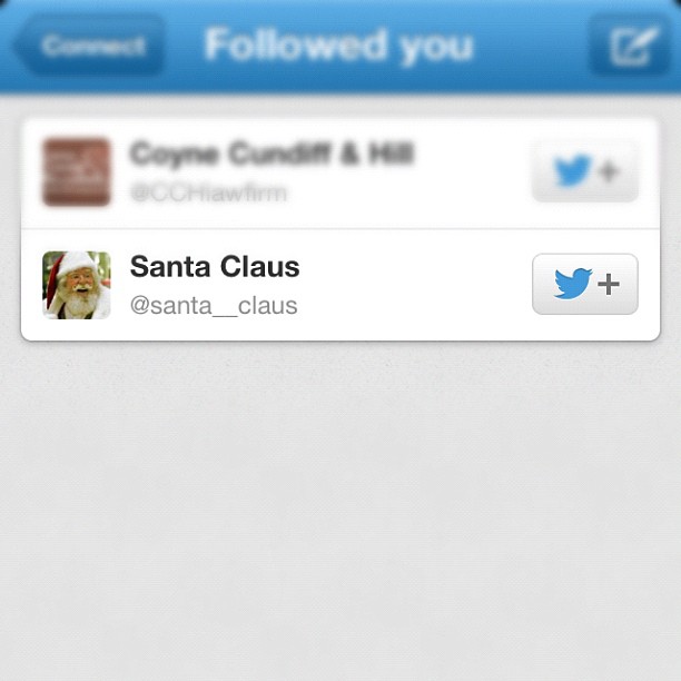 Santa Claus started following me on twitter!! I’m just curious as to which “list” he added me to… naughty or nice?!